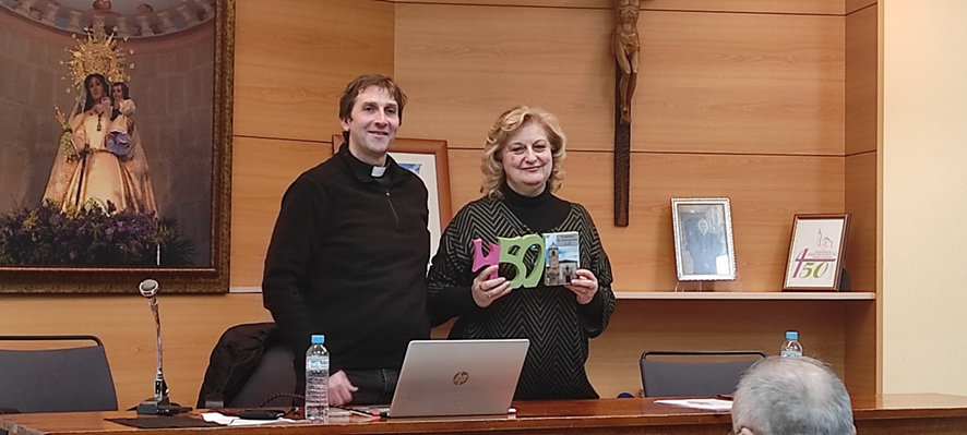 El acto continuó con un turno de preguntas y comentarios del público asistente, y se clausuró con la entrega por parte de la Parroquia de la Asunción de Ntra. Sra. de un obsequio a Natividad.