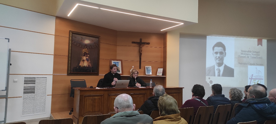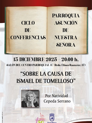 El pasado día 13 de diciembre de 2025, Doña Natividad Cepeda Serrano, Secretaria de la Asociación para la Causa de Beatificación y Canonización de Ismael de Tomelloso, acompañada por el Párroco Don José Ángel Martín Acosta y Consiliario de la Causa, impartió una conferencia llamada “Sobre la Causa de Ismael de Tomelloso” con motivo del ciclo de conferencias que se vienen dando en la Parroquia de la Asunción de Ntra. Sra. de Tomelloso por la celebración de su 450 aniversario.